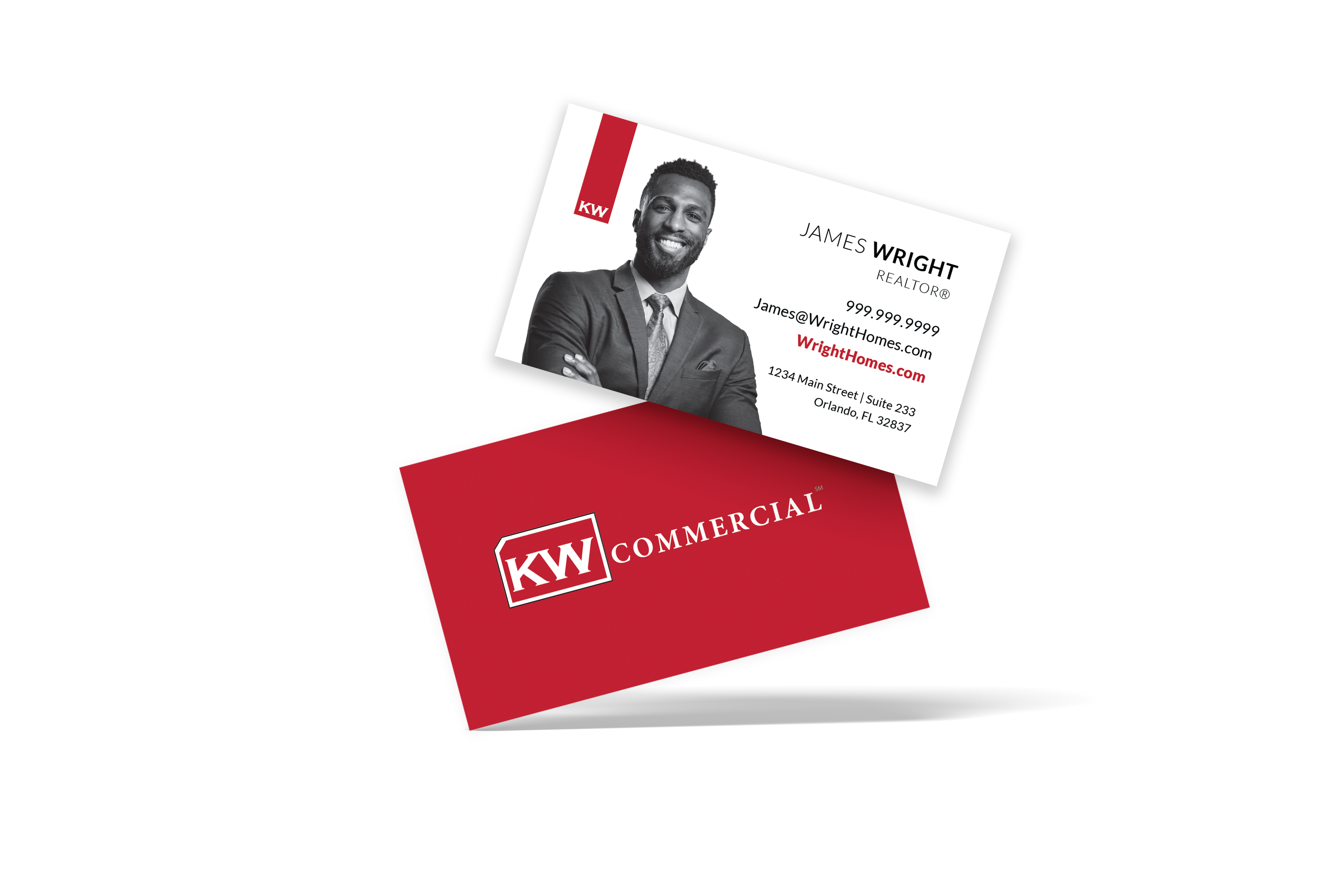 Horizontal White/Red KW Commercial Business Card w/ Headshot