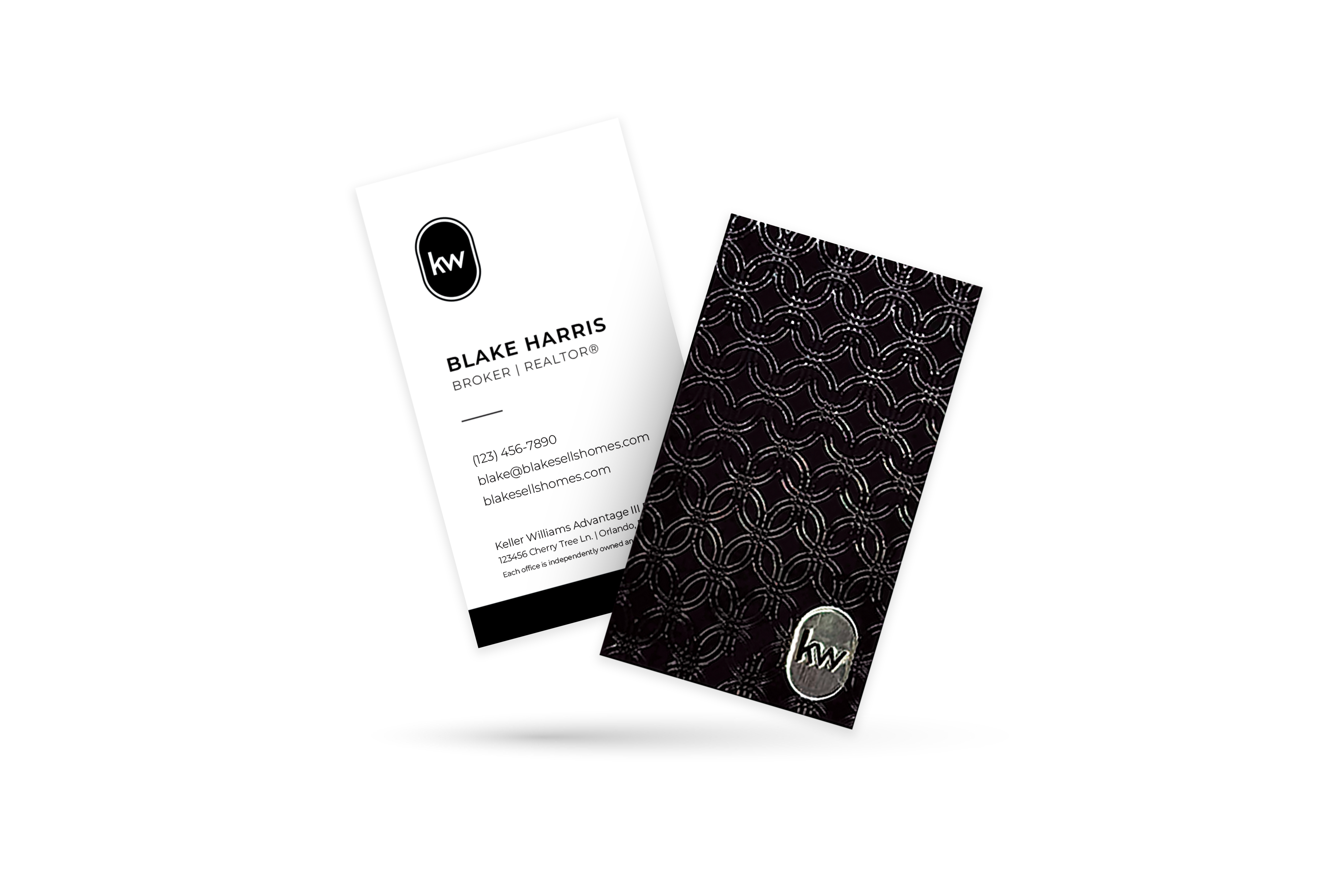 Horizontal Spot UV White/Black w/ Diamond KW Pattern Back KW Business Card